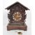An early 20th century carved wooden mantel cuckoo clock, in the style of black forest. Featuring an enamel Roman numeral chapter ring, a brass pendulum, two carved horn clock hands, and ornate leaf wood carving to the front body of the clock and a window above the clock that opens at the half hour marks to reveal a carved, painted bird figure. Raised on a wooden plinth base with four short tapering legs. Measuring approx. 32.5cm x 23cm x 14.5cm.
