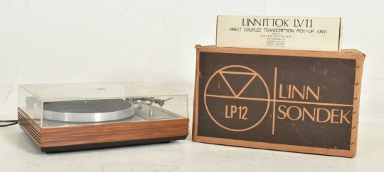 Linn Sondek Hi-Fi - Model LP12 - a vintage 1970s Transcription record player / turntable deck, having a clear perspex cover and walnut base. Linn Ittok LV II direct coupled transcription pick-up arm with a Sumiko Blue Point Special Cartridge. With Linn Sondek box and Linn Ittok LV II arm box.