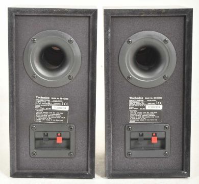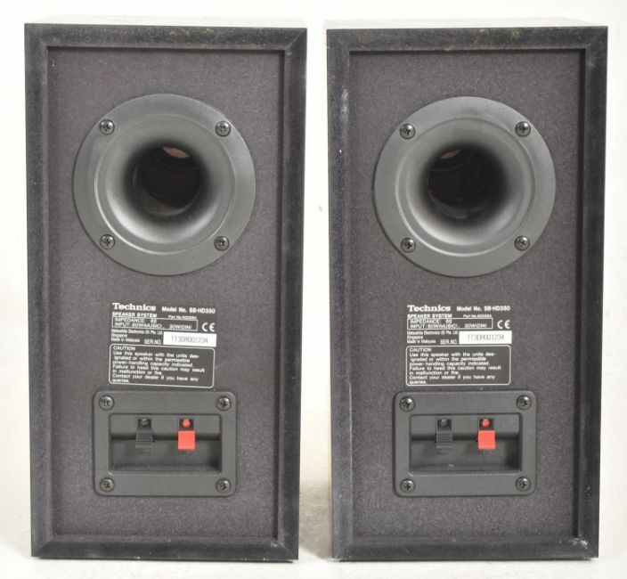 Technics Hi-Fi – Model SB-HD350 – a pair of shelf speakers. Each speaker is finished in stained teak with mesh covers. Within the original box.