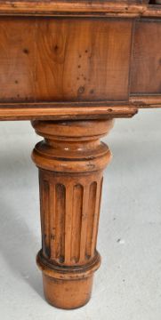Titchmarsh & Goodwin - a George III Revival yew wood bow front sideboard credenza. The sideboard having a straight top over a central twin handled drawer and cupboard door below, flanking bow fronted single drawers and cupboard spaces. Twin reeded columns details to front. All raised on turned reeded supports.With original ' Brights of Nettlebed 17th & 18th century replica furniture ' label to drawer, and original 1986 purchase receipt. Measures approx. 52cm x 137cm x 46cm.