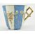 A 19th century European fine bone china porcelain teacup and saucer. The set featuring blue & white panels, gilt geometric handle, floral hand painted splays. Unmarked to underside.