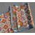 A vintage 20th century Anatolian Turkish Kilim carpet floor runner rug. Having shaped repeating diamond ground, in polychrome colour with blue border.