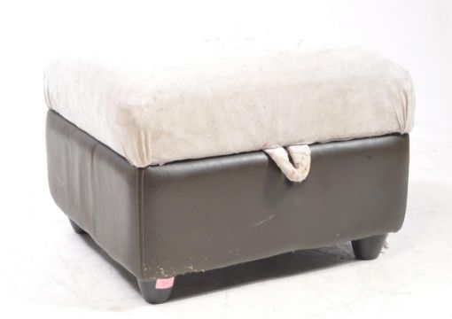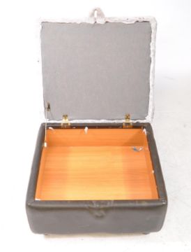 British Modern Design - A mid 20th century leather ottoman pouffe footstool. The ottoman having lift up lid upholstered in leather all over on plinth base.