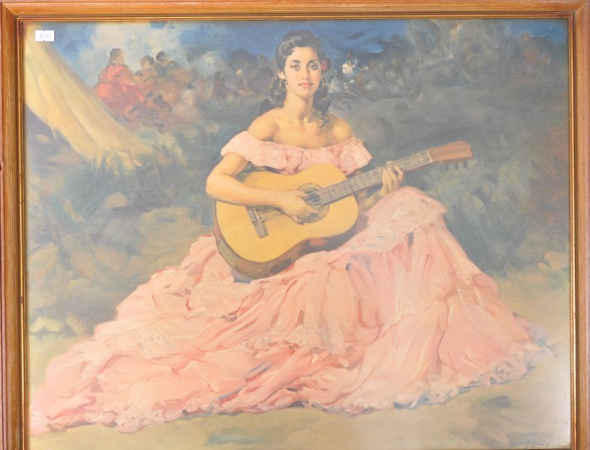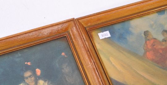 A pair of mid century prints of flamenco ladies comprised of 'Red Skirt' and 'Flamenco Lady' originally by Spanish painter Francisco Rodriguez Sanchez Clement. Both framed and glazed, measuring approx. 53.5cm x 66.5cm.