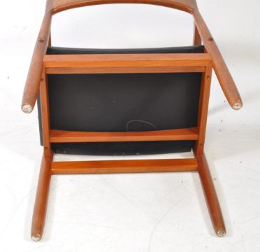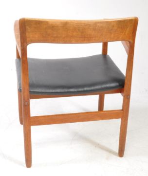 Youngers Furniture - A Mid Century Youngers Fonseca chair / easy armchair. Raised on turned legs with stretchers having shaped elbow rests. Black faux leather pad seat