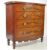 A Victorian 19th-century bow front flame mahogany chest of drawers. Rectangular flared top with a configuration of two over three drawers. Raised on four turned bun feet. Each drawer with brass handles. Flared top above