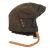 A WWI First World War British RFC Royal Flying Corps leather flying helmet MK1. Brown leather exterior with fur and shamois lining, chin strap, x3 button ear flaps and fold up peak.