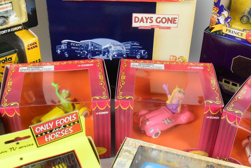 Diecast - a collection of assorted boxed diecast models of various scales and makers to include; Corgi The Muppets vehicles, Corgi Chitty Chitty Bang Bang, Lledo VE Day Gift Pack, Corgi Only Fools & Horses Reliant Regal Van and more.