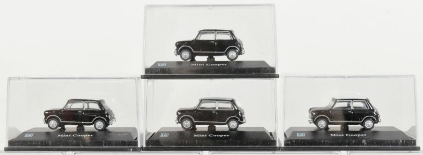Diecast - a collection of x19 Hongwell / Cararama made 1/72 scale diecast Mini Cooper models. Assorted colour ways, all boxed on inner display stands.