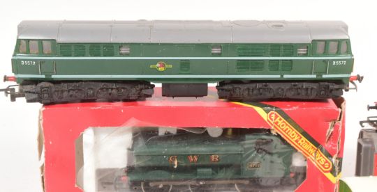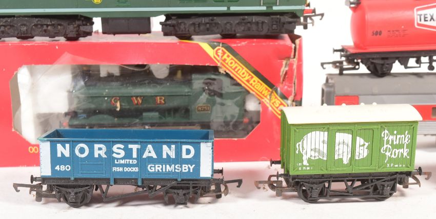 Model Railway - a collection of Triang / Hornby OO gauge model railway trainset locomotives and rolling stock wagons comprising GWR Pannier Tank, Class 31 D5572 in BR Green, Transcontinental Observation Car and x4 wagons,