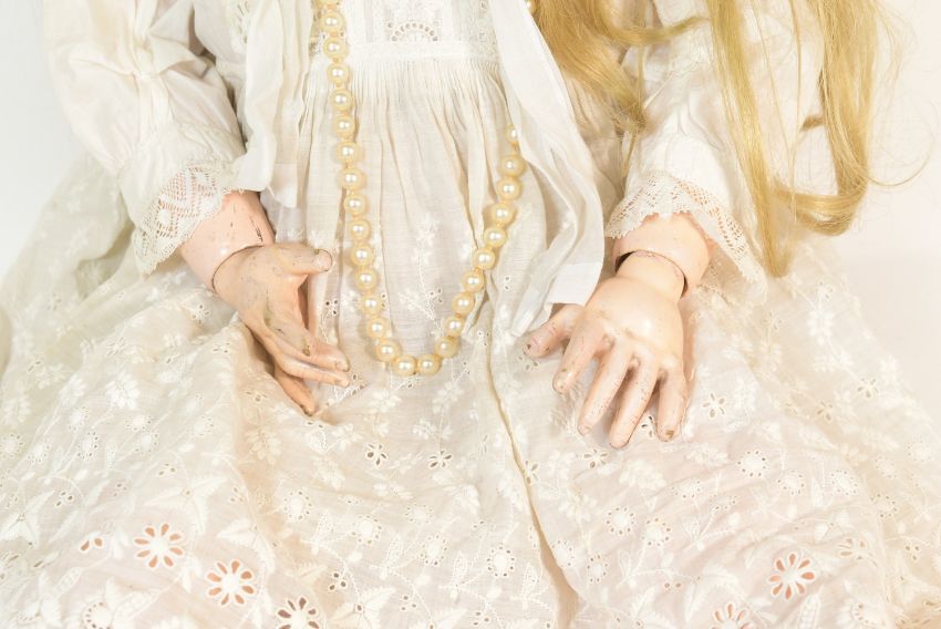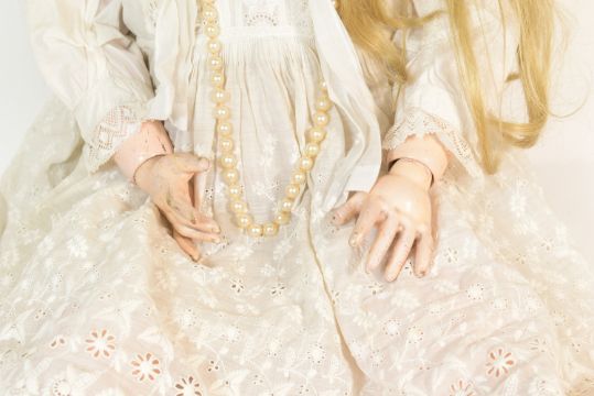 Doll - a large early 20th century German made Alt, Beck & Gottschalck bisque headed doll. ABG maker's marks to rear of head, with head number 1362. Brown glass flirty eyes, with open mouth retaining all original teeth. Composition body, with all fingers intact. Head appears free from damage. Total size: 83cm tall.