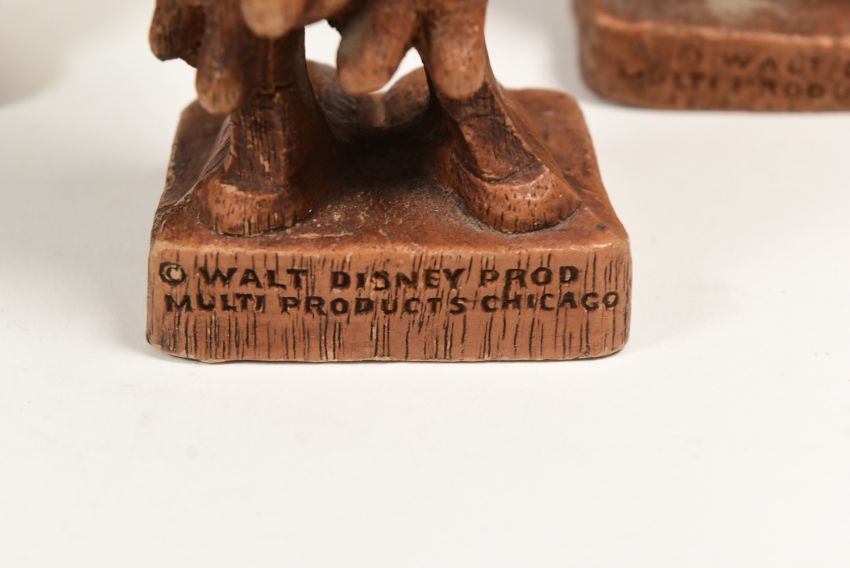 Pinocchio - a collection x8 of vintage 1940s ' Multi Products ' (Chicago) made Syroco wood Pinocchio figurines comprising; Geppetto x2, Giddy, Figaro, Honest John, Lampwick and Pinocchio x2. Tallest measures approx 18cm.