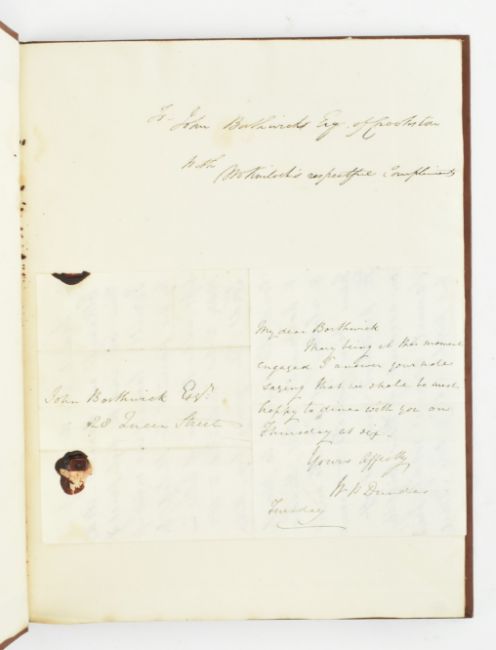 Scottish history. Two early 19th century works privately printed for the Maitland Club. The lot comprising 1830 Babell; a Satirical Poem on the Proceedings of the General Assembly in the year 1692, presented to John Borthwick Esq. of Crookston with compliments, letter from W. P. Dundas loosely inserted; and 1835 Reports on the State of Certain Parishes in Scotland from the originals preserved in His Majesty's General Register House, tipped in letter from the General Register House from MacDonald to John Borthwick of Crookston Esq. Each in paper covered boards, orig. spine labels, pages uncut & unopened at the head on occasion, odd spot. 4to.