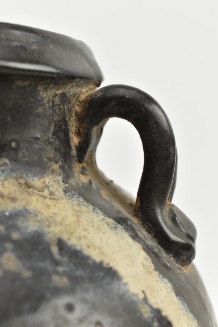 A Southern Song Jizhou pottery vase. The blauster shaped vase decorated with two handles and white abstract glazed cloud like formattion. Ungalzed to the base.