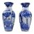 A pair of Japanese Arita style blue and white ceramic vases. Each baluster shaped vase decorated with flowers, landscape and rockscape.
