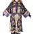 A late Qing dynasty embroidered satin silk cheongsam robe dress coat. The black-ground dress embroidered with colourful peonies throughout the dress, with a broad cream border on collar neckline, lower front opening and hems of the wide sleeves, decorated with cherry blossom, chrysanthemums, bamboo and orchid.