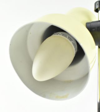 Veneta Lumi, Italy - a vintage mid 20th century circa 1970s painted metal adjustable desk table lamp. The lamp having a conical adjustable shade over a central chrome column. Raised on circular base. All in pastel yellow colourway. Stamped to underside. Sold as untested.