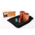 Two modern backgammon board game cases. House in a hinged wooden box. With pieces, black tie sack, two shakers and metal gilt fasteners.