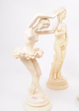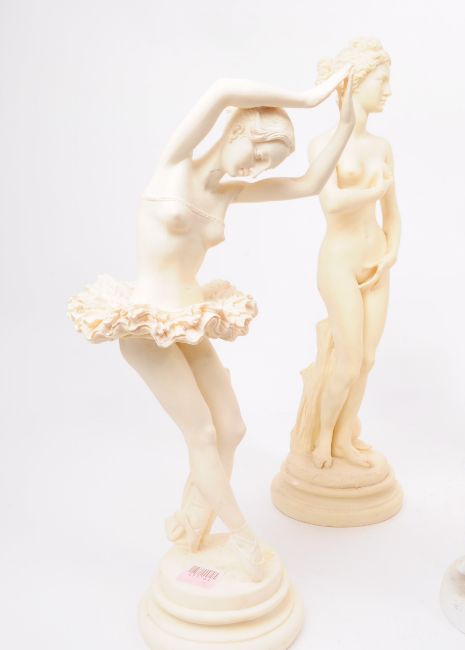 Collection of late 20th century plaster and resin classical and ballerina figures. Features ballerina dancers, nude women and classical men figures. Largest piece measuring approx. 40cm tall.