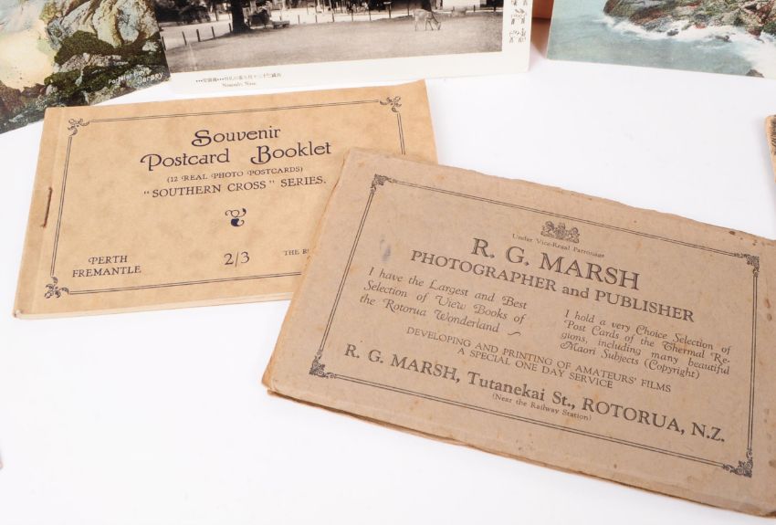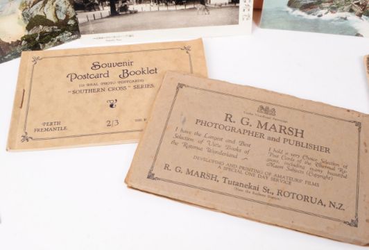 Collection of 20th century postcards and souvenir booklets. Examples including international locations, British and local interest locations, humour, illustrations, street portraits, photographic postcards, and more. Approximately 700 postcards present.
