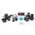 Collection of late 20th / 21st century cameras, lenses and accessories. Comprised of a Fujifilm Finepix S digital camera, a Praktica LLC film camera, a Canon EOS 400D digital camera, a Pentacon electric 2.8/135 lens, a Pentacon electric 2.8/29 lens, a Hoya HMC wide-auto 1:2.8 lens, and more accessories.