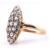 A gold and diamond navette ring. The gold yellow gold navette ring set with fifteen old cut diamonds set in a cut-down setting to trifurcated shoulders and tapered shank. Unmarked, surface tests indicate gold. Size O. Weighs 4.0g. All weights, measurements and sizes are approximate.