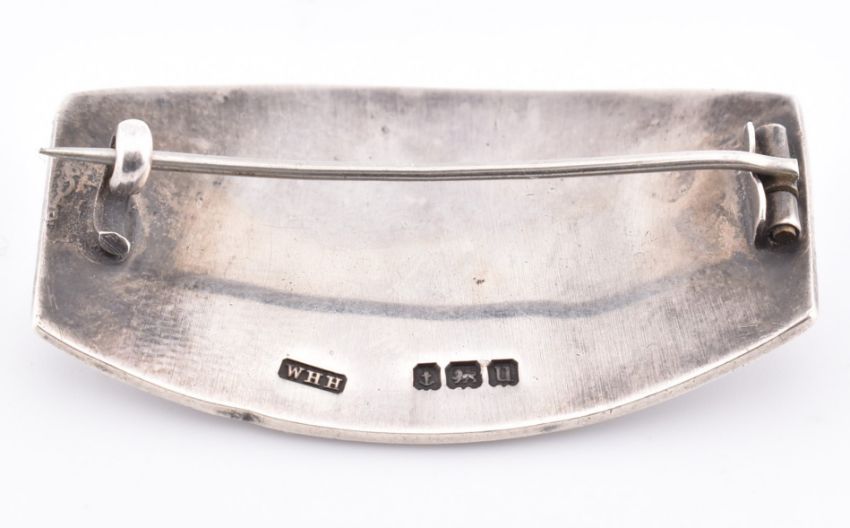 A hallmarked silver and enamel Art Nouveau religious brooch pin. The Art Nouveau brooch pin having a central blue enamel panel with the acronym CATH to silver border featuring the Bible quote 'Neglect Not The Gift That Is In Thee' to hinge pin and c-clasp verso. Hallmarked for Birmingham, 1919. Maker's mark W.H.H. Measures 4cm x 2.2cm. Weighs 10.5g. All weights, measurements and sizes are approximate.