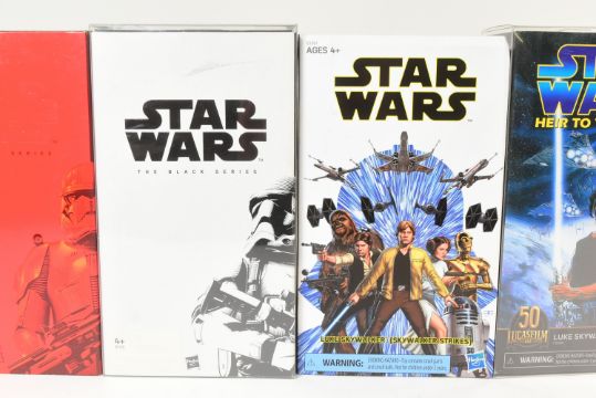 Star Wars - The Black Series - 6" scale action figures - collection of x5 c2020s Hasbro made Black Series boxed action figures. Including: Sith Trooper, First Order Stormtrooper, Droids Boba Fett, Heir To The Empire Luke Skywalker & Ysalamiri, and Luke Skywalker (Skywalker Strikes). All contents mint, as new, factory sealed. Some in protective cases.