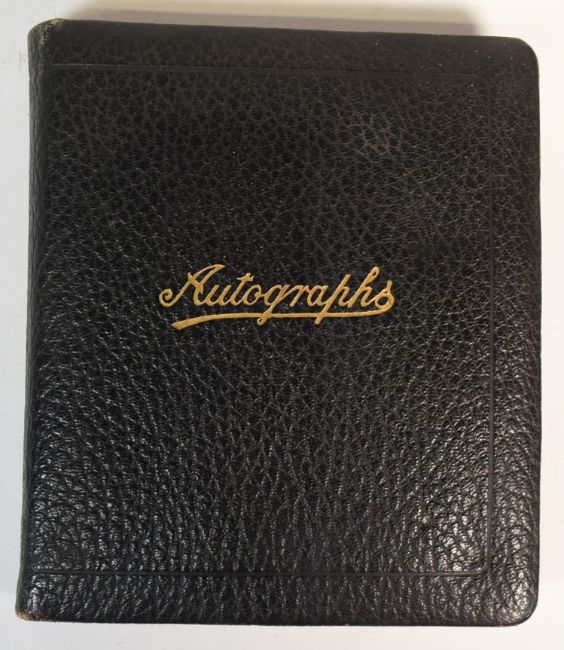 Autographs - an autograph album from 1924 featuring signatures of entertainers, bands, sportsmen and radio personalities of the period. 1920s to 1940s. Autographs include: The Bristol Rugby Football Club 1924-1925 including a signed laid-in photograph of Leonard Corbett (played for England), a sketch by 'Blos' - Evening World illustrator 1935, 'Alfredo And His Band,' The Bristol Glee Singers, Jack Stanley, Stanelli and his 'Hornchestra!' 'Uncle' Leonard Henry, The Radio Three, Lord Mayor of Bristol HJ Maggs, Geraldo, Will Hay (clipping from a letter), Bobby 'The Uke' Henshaw, Marion Navarre, Marius B. Winter's Orchestra, several signatures from the 1935 / 1937 / 1938 Bristol Radio Exhibition, Gordon Freeman, Gert & Daisy, Pat O'Brien, Beryl Orde, Standford & McNaughton, Phyllis Smale, Band Of The Royal Marines 1937, Harry Hemsley, Jean Melville, Jan Ralfini & His Band, Chick Farr, George Hughes, Doris Cuban, Bennett & Williams, Suzette Tarri, The Four Aces, Leslie Hinton, 1938 Royal Marines Band, Claire De Lys, Charles Clapham (of Clapham & Dwyer), Herman Darewski & His Band, Lord Mayor & Lady Mayoress of Bristol 1940-41, Wilfred Pickles (clipping from a letter), Morans (Bristol store owners) and many others. Approx 50% full, and extremely well presented. A unique and fascinating local interest autograph album from the period.