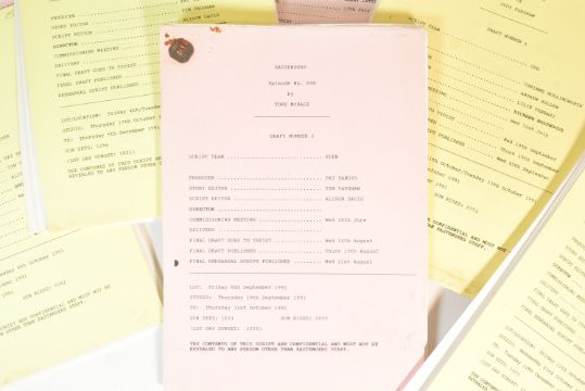 EastEnders (British Soap Opera) - a collection of x10 original production used scripts for various early 1990s episodes. Each episode is numbered and includes: 698, 633, 642, 636, 700, 704, 706, 707, 708, 709 and 710. Each script appears complete, with cover and original pins to corner. All circa 1991.