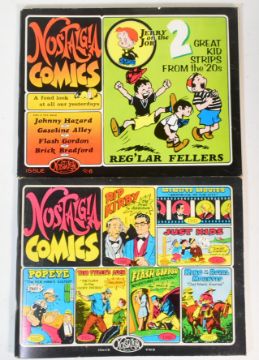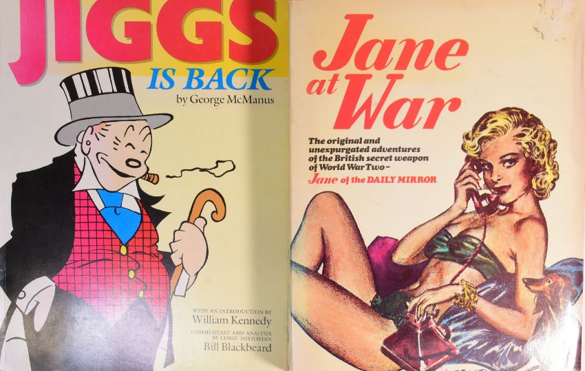 Comic books - A collection of x19 mostly American comic strips and cartoon volume books. Titles include 'Bringing Up Father','The Gumps', 'The Celebrated Cases of Dick Tracy', 'The Collected Works of Buck Rogers in the 25th Century', 'Arf! The Life and Hard Times of Little Orphan Annie', 'Popeye the Sailor', 'Jane at War', 'The Comics: An Illustrated History of Comic Strip Art', 'Nostalgia Comics' issues 1 - 6 and others. Varying conditions please refer to photos.