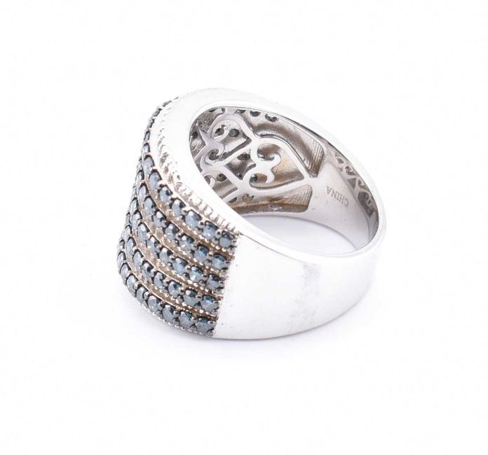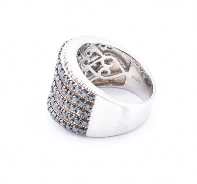 A 925 silver blue and white diamond Manhattan collection ring. Diamonds approx1.9cts, 9.7g, size P. With certificate.