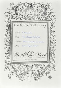 ARTISTS RE-SALE RIGHT. Buyers of the re-sold art of living artists will be charged the royalty where applicable. Currently this is 4% on any item sold at 1000 Euros or over, diminishing from 50,000 Euros. VAT is not applicable on this charge. Further details can be obtained from artistscollectingsociety.org.
