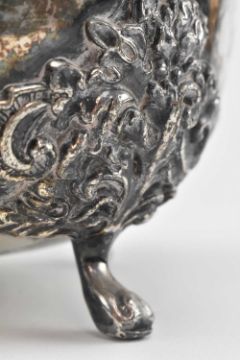 A vintage 20th century silver plate EPNS nut / fruit bowl by Rockford, America. The deep round bowl decorated with foliate rim, moulded squirrel finial to handle on each side, four foliate appliques to exterior & raised on four feet. Embossed mark to base.