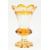 A collection of 20th century Bohemian cut glass items. The lot including a set comprising of dish, vase, goblet and lidded bon bon dish in clear and orange cut glass with etched architectural decorations of various German towns. Together with pair of frosted & cut coloured glass chalices. Each with yellow and pink decorations and gilt rims. Some chips present.