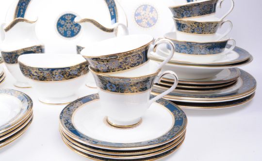 Royal Doulton - Late 20th century china Carlyle patterned H. 5018 part dinner service. Comprised of tea cups, saucers, small plates, dinner plates, bowls, serving plates, jugs, tureens and more. Makers mark printed to the underside of the pieces.
