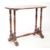 An Edwardian walnut occasional console table. Cuvred rectangular form with four turned supports on turned single stretcher. Raised on trestle legs with finial decoration united by stretcher. Measures approx: 70x90x45cm
