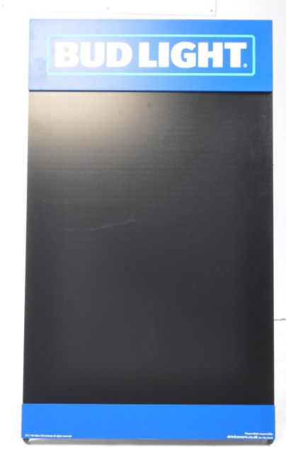 Budweiser Bud Light - A retro new old stock 2017 Budweiser Bud Light point of sale advertising A board sign. The sign having black chalkboard panels, with light blue Bud Light branded borders to top and bottom.