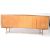 British Modern Design - A vintage mid 20th century walnut inlaid sideboard credenza. The sideboard raised on tapered dansette style legs terminating in brass feet. Having low gallery surround to top. Featuring two twin door cupboards to front, with inlaid geometric pattern, and metal shaped handles. Measures approx: 86x200x45cm