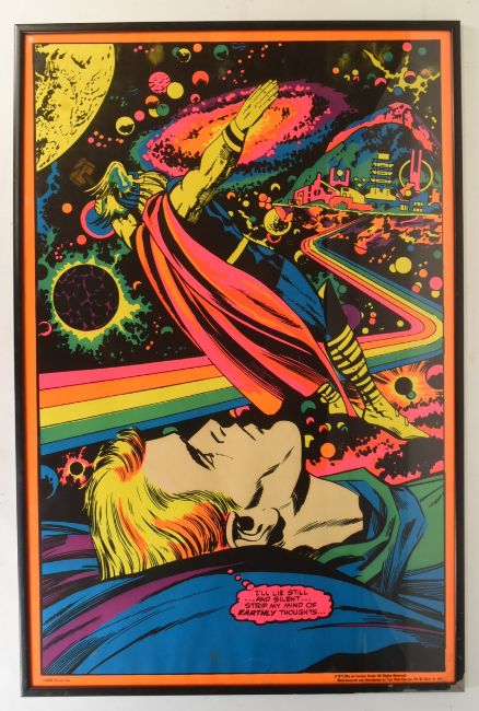 Marvel - an original vintage 1970s (1971) Third Eye Black Light poster No. #4006 Astral Thor. Framed and glazed, measures approx 84x57cm.