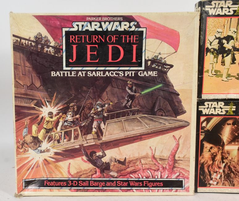 Star Wars - a collection of original vintage c1970s / 1980s games and kits. Includes: Return Of The Jedi Battle At Sarlacc's Pit Game, and three 1977 'Star Wars' jigsaw puzzles; 'Inside the Millennium Falcon, 'Entering the City' and 'Han Solo and Chewbacca'. All are presumed complete, but are unchecked by us. Boxed.