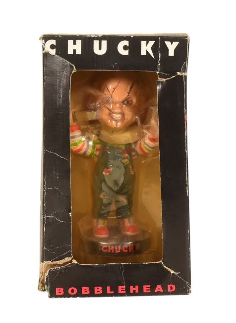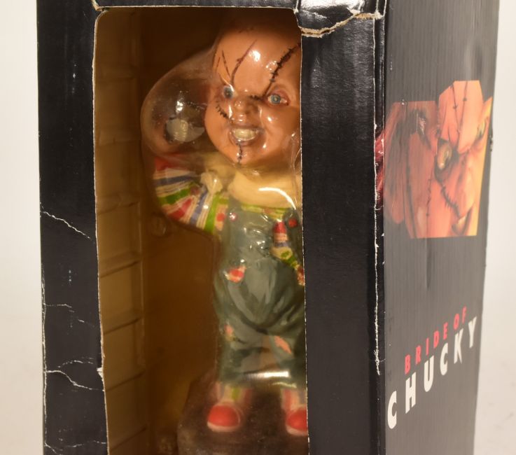 A boxed Hollywood Collectibles Group bobblehead figure of Chucky. The hand painted resin figure measuring approx 8" tall.