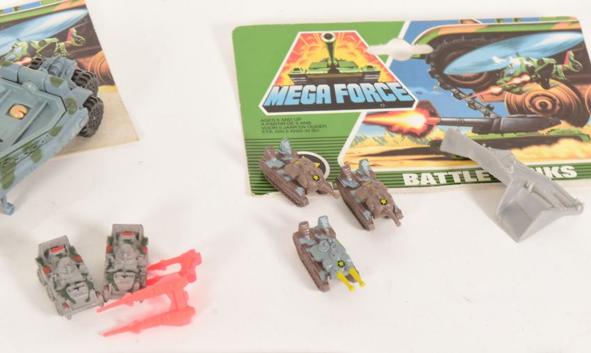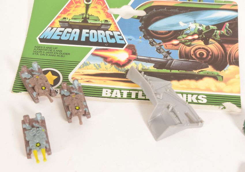 Mega Force V-Rocs - A collection of x10 assorted vintage 1989 Kenner made ' Mega Force ' diecast fighter vehicles. Includes Battle Tanks, Rocket Launchers, Fighter Bombers, Attack Helicopters and others. Most with some of original card back supplied.
