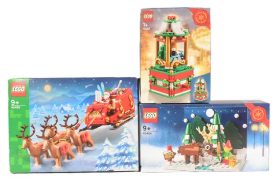 Lego - a collection of x3 factory sealed Lego Christmas sets comprising; 40293 Christmas Carousel (retired), 40484 Santas Front Yard and 40499 Santas Sleigh.