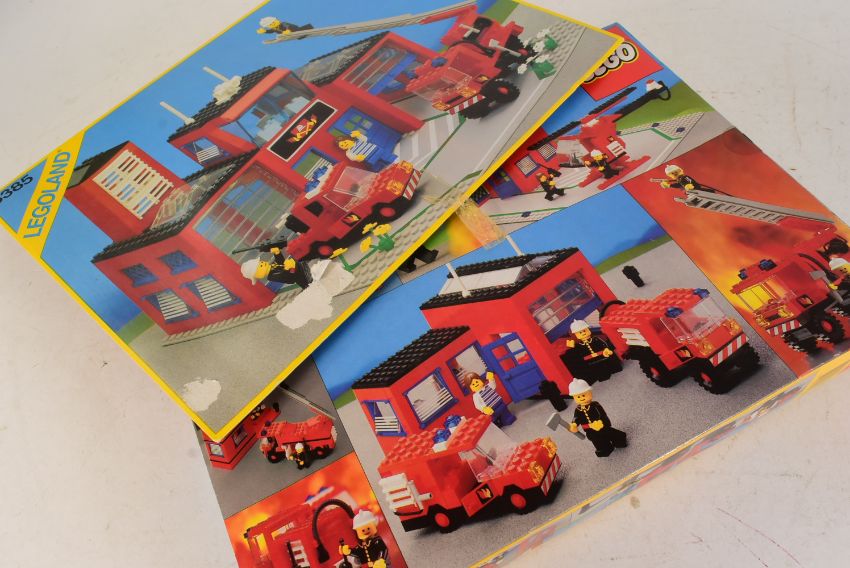 Lego - x2 vintage 1980s Legoland sets comprising 6379 Riding Stable and 6385 Fire House. Both with boxes and instructions.