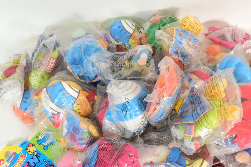 A large collection of early 2000s McDonalds Happy Meal toys to include complete collection of Wind In The Willows, Mr Men, Rupert The Bear and others. All sealed.