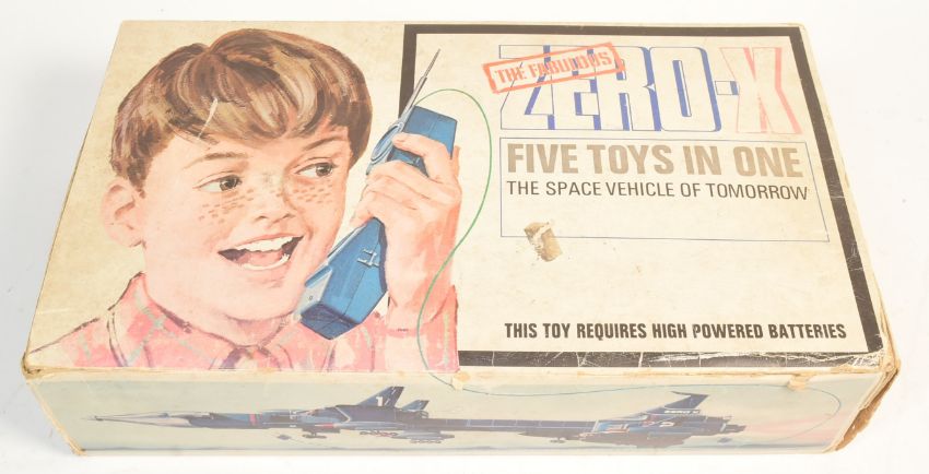 Thunderbirds - An original boxed Zero-X 'The Space Vehicle of Tomorrow' made by Gerry Andersons' Century 21 Productions in 1967 and as featured in the film 'Thunderbirds Are Go!'. Includes 'Five Toys in One' with battery powered Zero-X model, plug in control unit, and M.E.V (Martian Exploration Vehicle). Contents appear complete but untested by us.