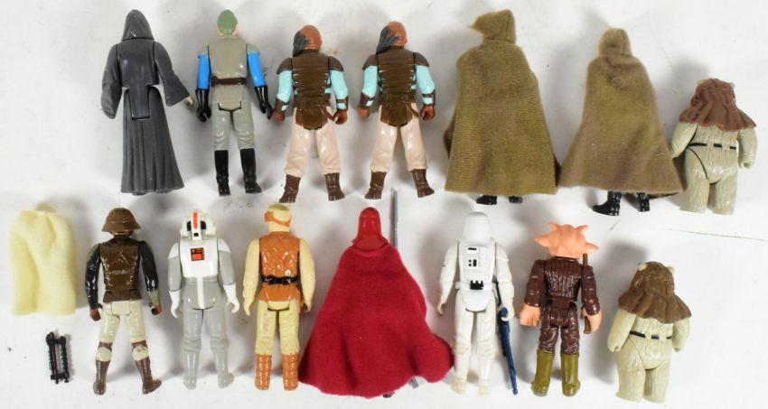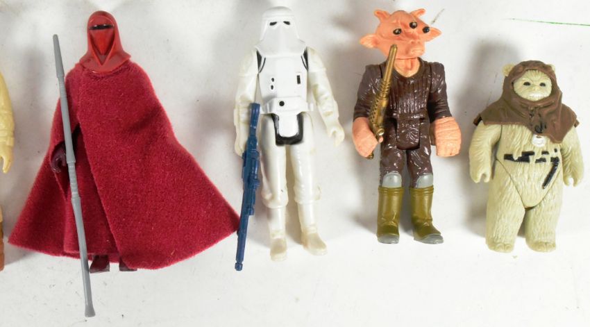 Star Wars - a collection of x14 original vintage Palitoy / Kenner made Star Wars action figures. Includes: Emperor's Royal Guard (complete with weapon), Ree Yees (with partial weapon), Imperial Stormtrooper (with weapon, lacking cape), and the following figures with no accessories: Luke Skywalker Jedi Knight, AT-ST Driver, General Madine, Nikto, The Emperor, Ewoks and others. Various conditions. From a genuine childhood collection.