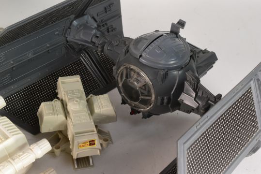 Star Wars - collection of original vintage Kenner / Palitoy made action figure playsets. Includes: Millennium Falcon (with many small accessories - one ramp strut, floor panel, top gun, chair, dish (but not the dish stand), table and hatch), Scout Walker (complete), Darth Vader's TIE Fighter (complete, wings no longer hold together), X Wing Fighter (incomplete), Speeder Bike (incomplete) and some other items present. Various conditions. From a genuine childhood collection.