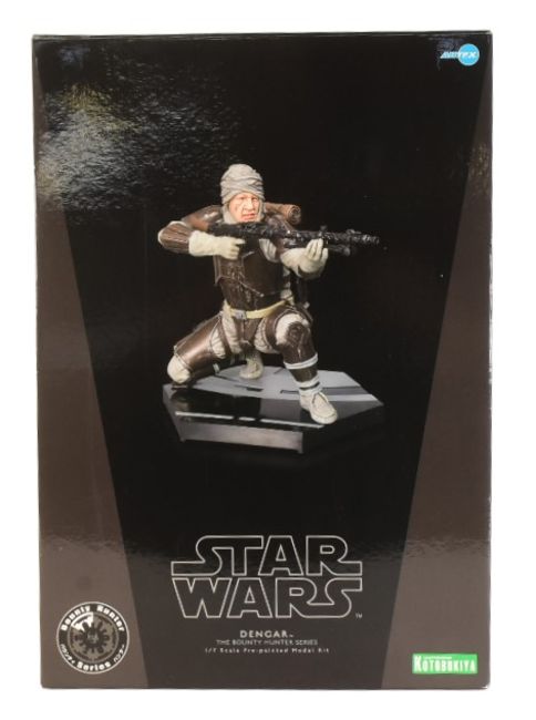 Star Wars - ArtFX - 2007 ArtFX made Japanese import 1/7 scale pre-painted model kit of Dengar from the Bounty Hunter Series. Highly detailed figure model kit. Appears mint and unused, still set within its internal packaging. Within its original box (box opened).